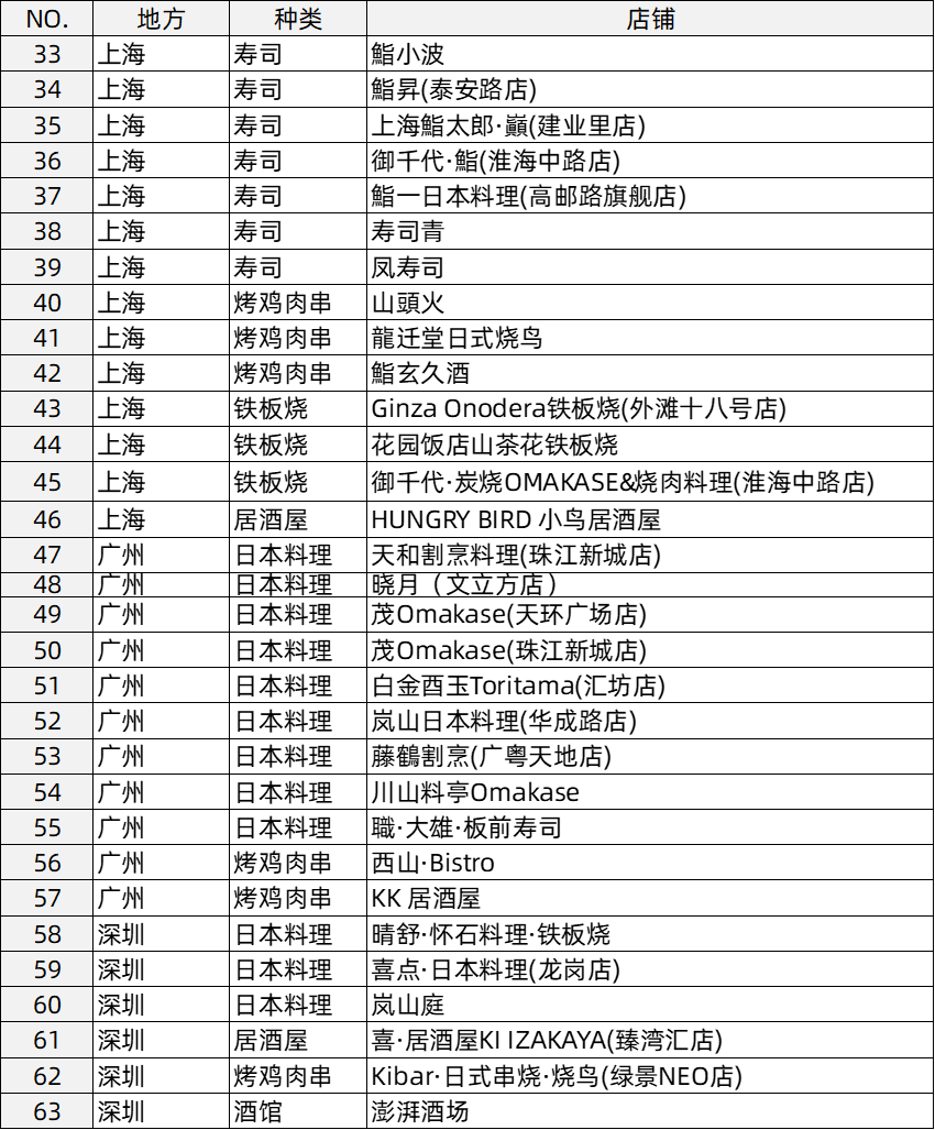 活动地点:上海、广州、深圳63家日料餐厅(详见参与活动餐厅一览表)