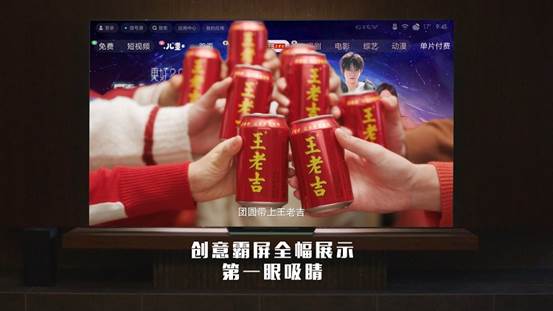 借助创意开机这个大屏黄金第一入口,小米ott开机第一眼锁定视觉冲击力,以快节奏的画面叙事、喜气十足的新年氛围以及年轻化的场景风格,一秒抓住受众尤其是年轻受众的眼球,高度契合王老吉品牌调性,亦凸显出品牌持续拥抱年轻人的态度。
