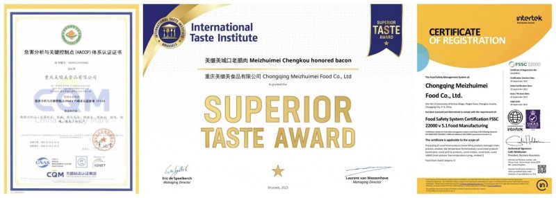 在重庆众多的城口老腊肉品牌中,美缀美的品牌口碑愈发高涨。美缀美以腊肉作媒,承载传统城口老腊肉的“色、香、味、形、意、养”,不仅通过了国际食品安全体系的多项认证,还屡次荣获国际美味大奖。