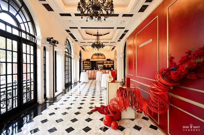 宴会现场以盛开繁花打造艺术长廊,宾客穿越层层拱门,则取「跃龙门」之美好意愿。长廊尽头展现的龙年奇境将宾客包围,让来宾沉浸式感受匠心艺术的无穷魅力与龙运流转的无限能量。此刻拂面吹风,带来沁人花香,栩栩如生的龙鳞迎风舞动……「风动龙影」画幕墙仿佛灵动游龙浮现于宾客眼前,其充满韵律感的节奏,令人惊鸿一瞥「婉若游龙乘云翔」。这是对艺术家画作的瑰丽解构,亦将「见其首不见其尾,或云中露一爪一鳞」的神龙性情以更为具象的方式进行浪漫解读。courvoisier馥华诗干邑标志性的「花香风味」幻化成深浅各异的红色盛放花海,与法式经典的烛台与具有欧洲贵族气息的餐瓷及水晶杯装点着宴会现场。枝形水晶吊灯散放着氛围感十足的璀璨光芒,烘托出法国沙龙文化轻松愉悦的社交氛围。