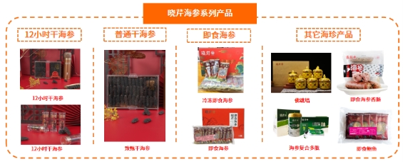 基于消费者对海参品质、口感、新鲜的迫切诉求,晓芹研制出了高纯度、溶解快、易吸收且营养丰富的海参肽。与此同时,鉴于消费者方便、快捷的潜在消费夙愿,晓芹通过不断地进行对比试验和技术迭代,在传统干海参的制作技术上取得突破,推出了泡发更加快速、方便的12小时干海参和解冻后可以直接食用的即食海参,解决了传统干海参泡发的麻烦。两类海参产品自上市以来都受到了一众好评。