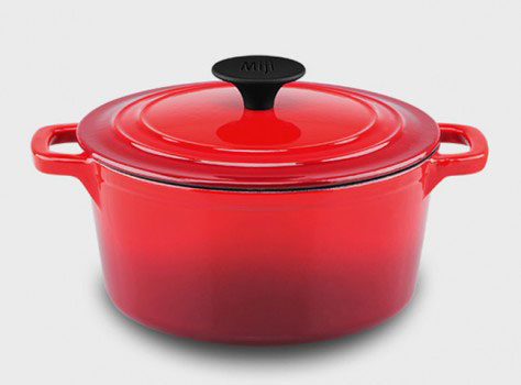 miji 20cm珐琅铸铁锅源自德国,有着良好的储热性能,烹饪中使用小火即可达到很好的加热效果,传承百年浇铸工艺,高温融化铁水,冷却后一体成型,自循环水滴设计,圆润把手,值得入手。http://gome.cn/7nost