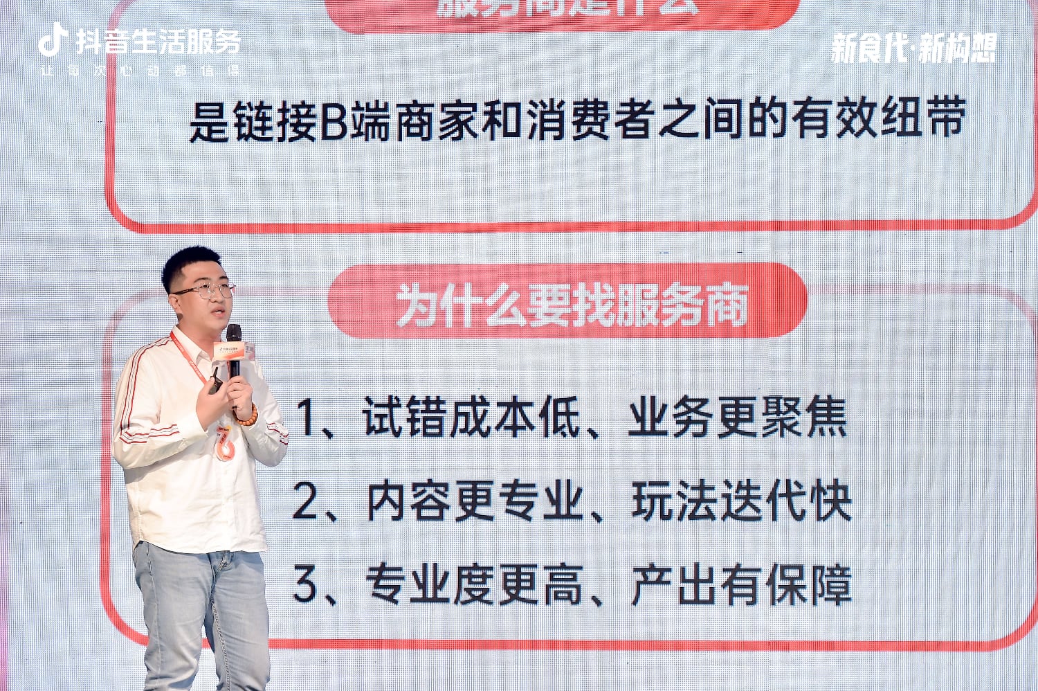 抖音生活服务服务商管理部餐饮行业太原负责人王家恩抛出服务商新模式,以“服务商如何助力商家经营增长”展开讲解。王家恩以服务商生态全链路及运营凯发娱乐官网的解决方案,将立足于商家的精细化运营方法进行立体展示,让用户多渠道触达实现流量效率最大化。