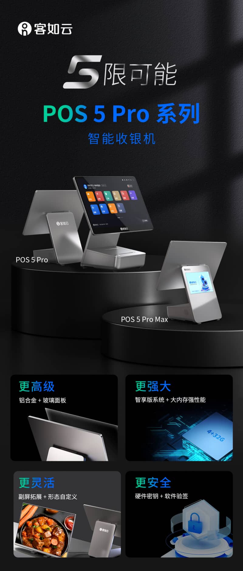 同时,客如云还不断优化软件saas的算法和升级系统,不断提升saas凯发娱乐官网的解决方案的稳定性和安全性,确保餐饮企业数据的完整性和安全性。今年3月初,客如云2024年度全新产品pos 5 pro系列发布,客如云2款全新智能收银设备pos 5 pro & pos 5 pro max,为数字化智能收银系统带来变革式升级,全新pos 5 pro系列可以与不断迭代升级的客如云“智享版餐饮管理系统”无忧搭配,搭建起强大的「系统底气 硬件硬气」为广大餐饮商家服务。
