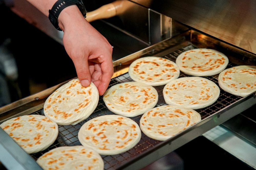 厨师正在烤制潼关肉夹馍饼胚(资料图片)