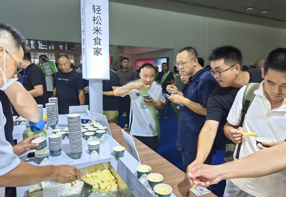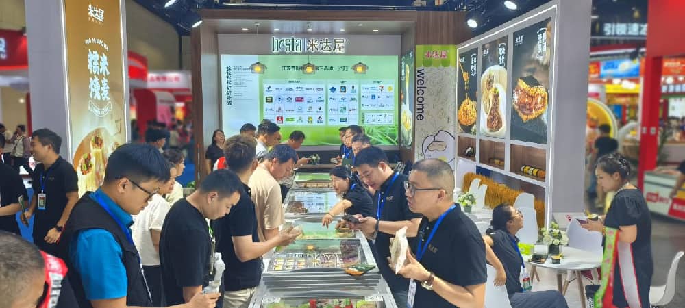 参展商们纷纷排队等待试吃,品尝过后,赞不绝口。有的称赞炒饭的口感丰富,有的对烧麦的味道念念不忘。现场气氛热烈,大家对米达屋的产品给予了高度评价,“味道绝妙!”“食材新鲜,口感一流!”这样的好评如潮,充分证明了米达屋美食的独特魅力和高品质,这一试吃活动也无疑成为了展会中的一大亮点。