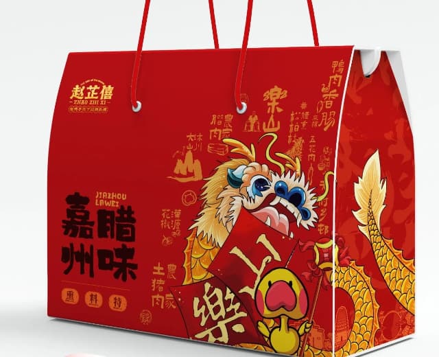 而面对越来越近的年关,为了进一步丰富乐山人记忆中的乐山年味,赵鸭子旗下国潮品牌【赵芷僖】也推出了【嘉州腊味礼盒】,包含了川味麻辣香肠、五花腊肉、腊排骨、腊猪舌等一系列腊味(以及其它风味),肥而不腻、腊香四溢,品类丰富,价格实惠。