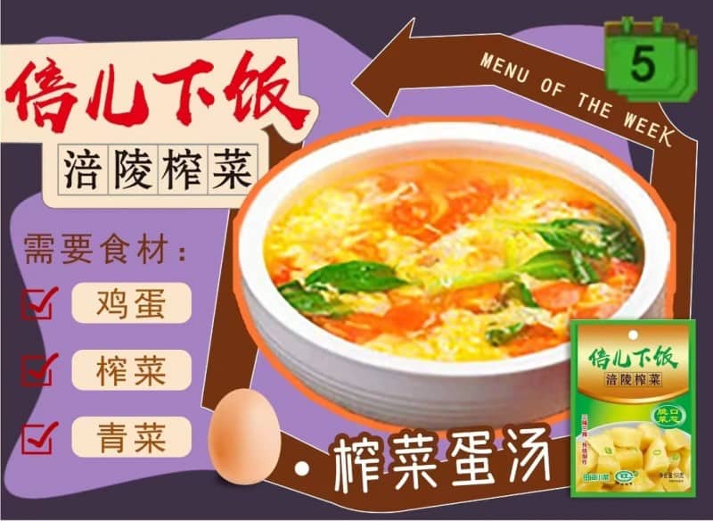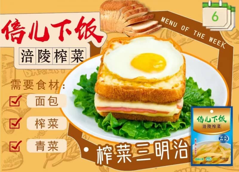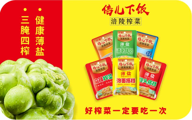榨菜被称为“天然味精”,有着特殊咸鲜味,脆嫩爽口,深受大众喜爱。在传统印象中,它通常被用作配粥吃馍、拌饭拌面的佐餐小菜,但随着时代的变化发展,倍儿下饭涪陵榨菜正在打破传统界限,逐步实现“万物皆可配榨菜”的华丽转身,发展成为中西饮食文化交融的催化剂。