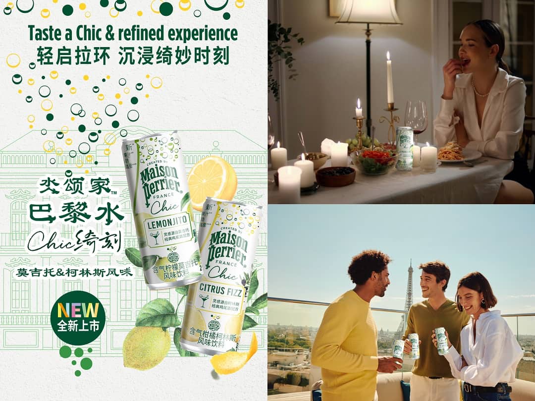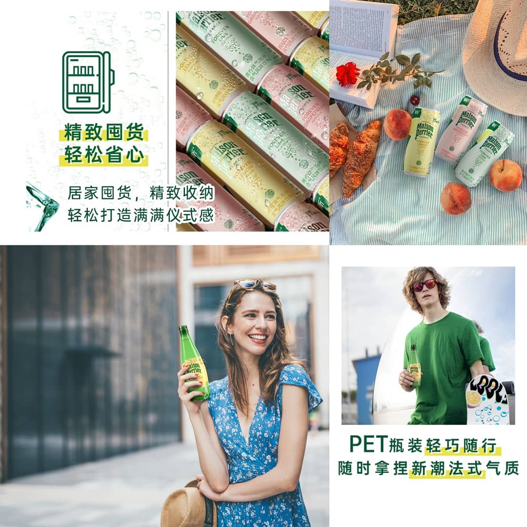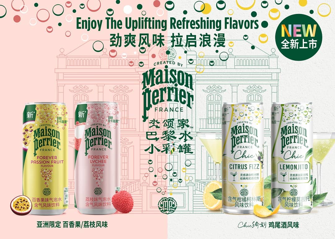 2024年夏季,也是巴黎奥运会的举办之际,maison perrier氼颂家巴黎水正式上市,氼(mèi),意为沉浸美好;颂 (sòng) , 意为颂扬创意。全新maison perrier氼颂家巴黎水,坚持健康定位,带来无与伦比的轻盈愉悦体验,纵享无负担的精致悦己生活;劲爽气泡,非凡口感,天生浪漫,激发大胆先锋的品牌创意;新潮法式炫彩包装,成为时髦艺术的视觉标识,真正引领中国消费者沉浸于灵感和创想交织的新空间,咏颂独特的法式气质和冒险精神。