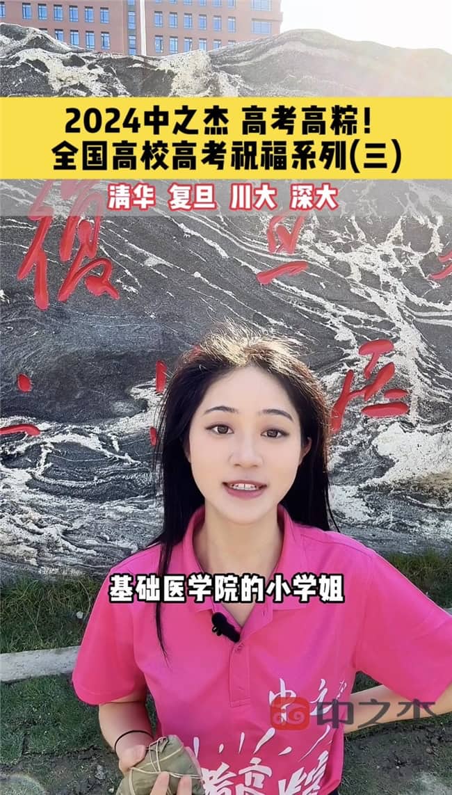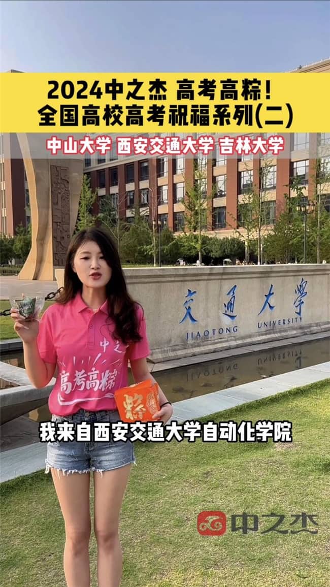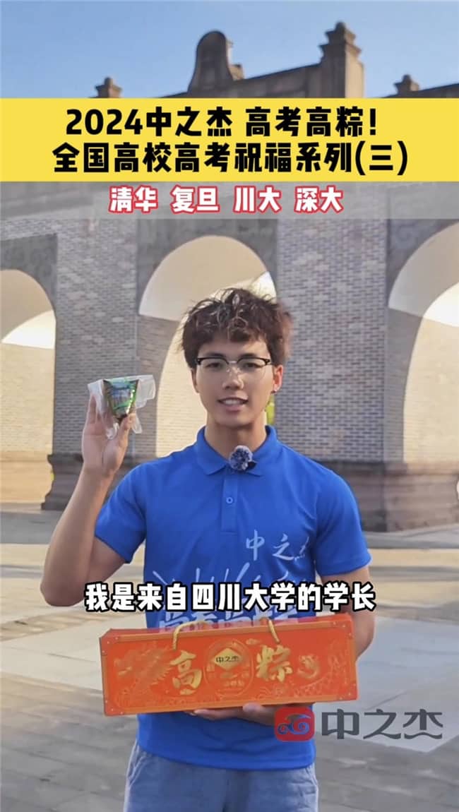 这项名为“粽情高考,全国十城高校共祈愿”的公益活动,在清华大学、吉林大学、东北大学、哈尔滨工业大学、复旦大学、西安交通大学、武汉大学、中山大学、深圳大学以及四川大学等十所高等学府中热烈开展。每所学校都诚邀一位或数位备受尊敬的校友代表,他们在校园标志性建筑前,身着中之杰定制t恤,手捧寓意深远的“高考祈福粽”,为所有即将踏入考场的学子们加油打气。